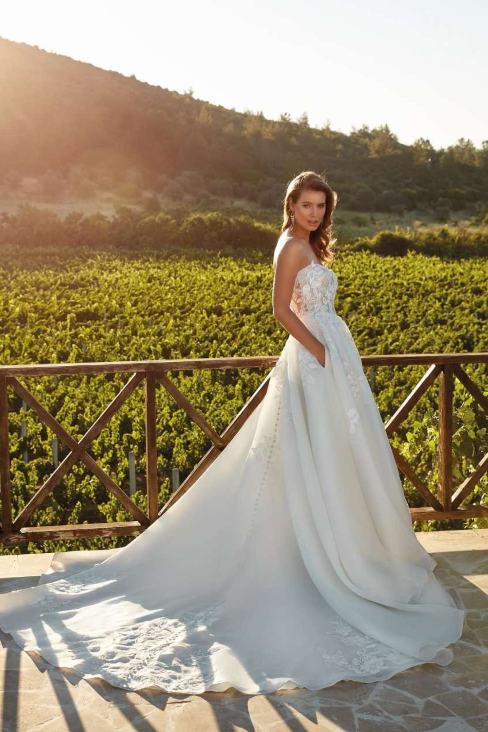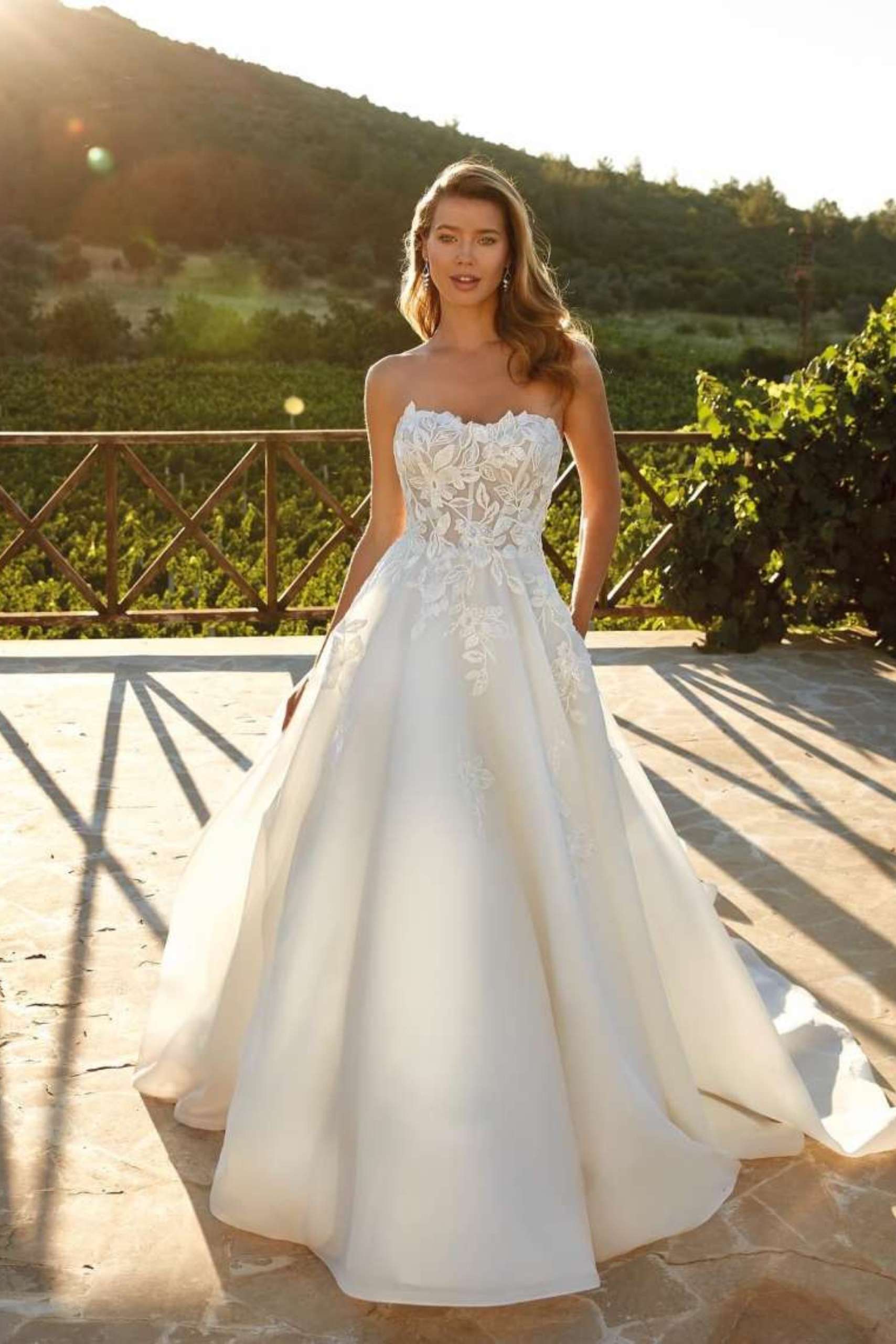 • Erin captures timeless romance through delicate lace and soft organza, creating a light, flowing silhouette. The subtle shimmer of sequins adds a refined glow.