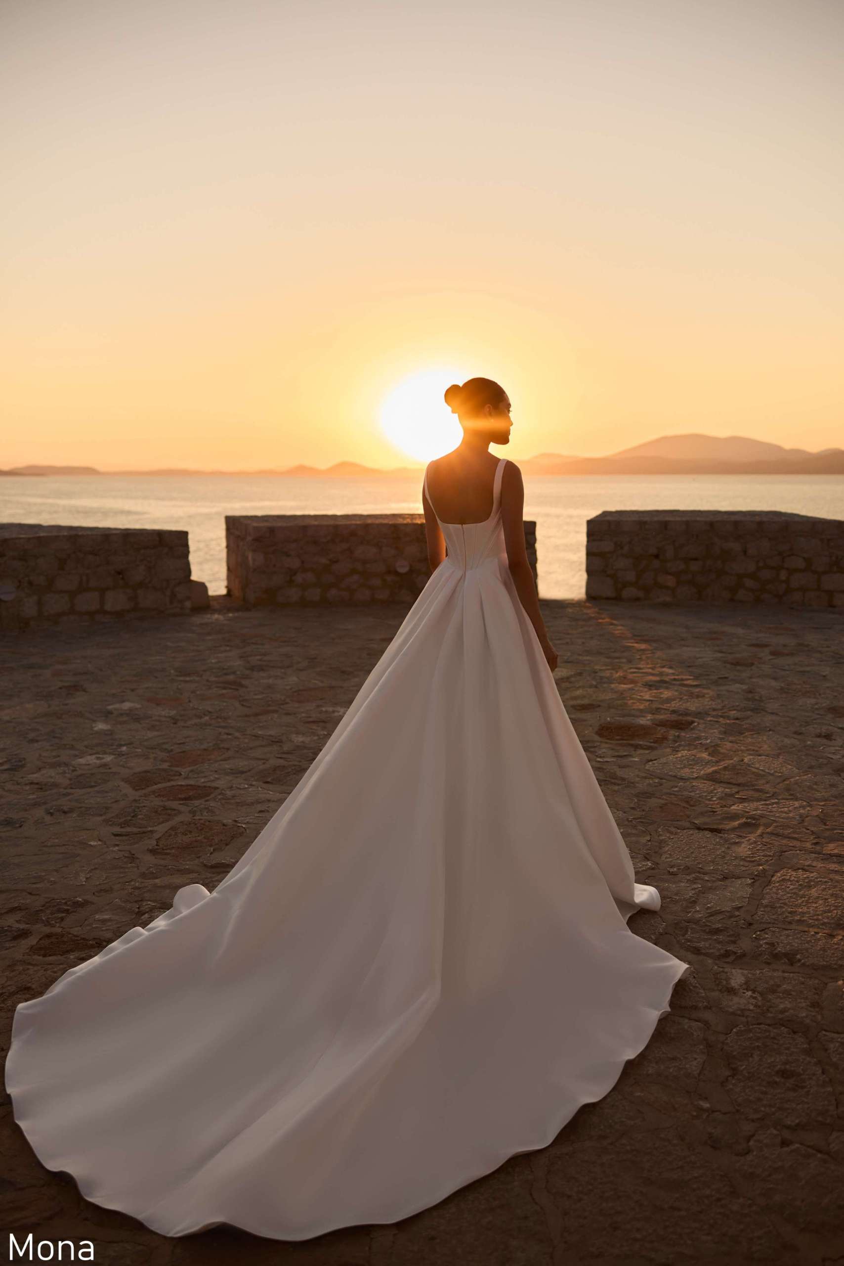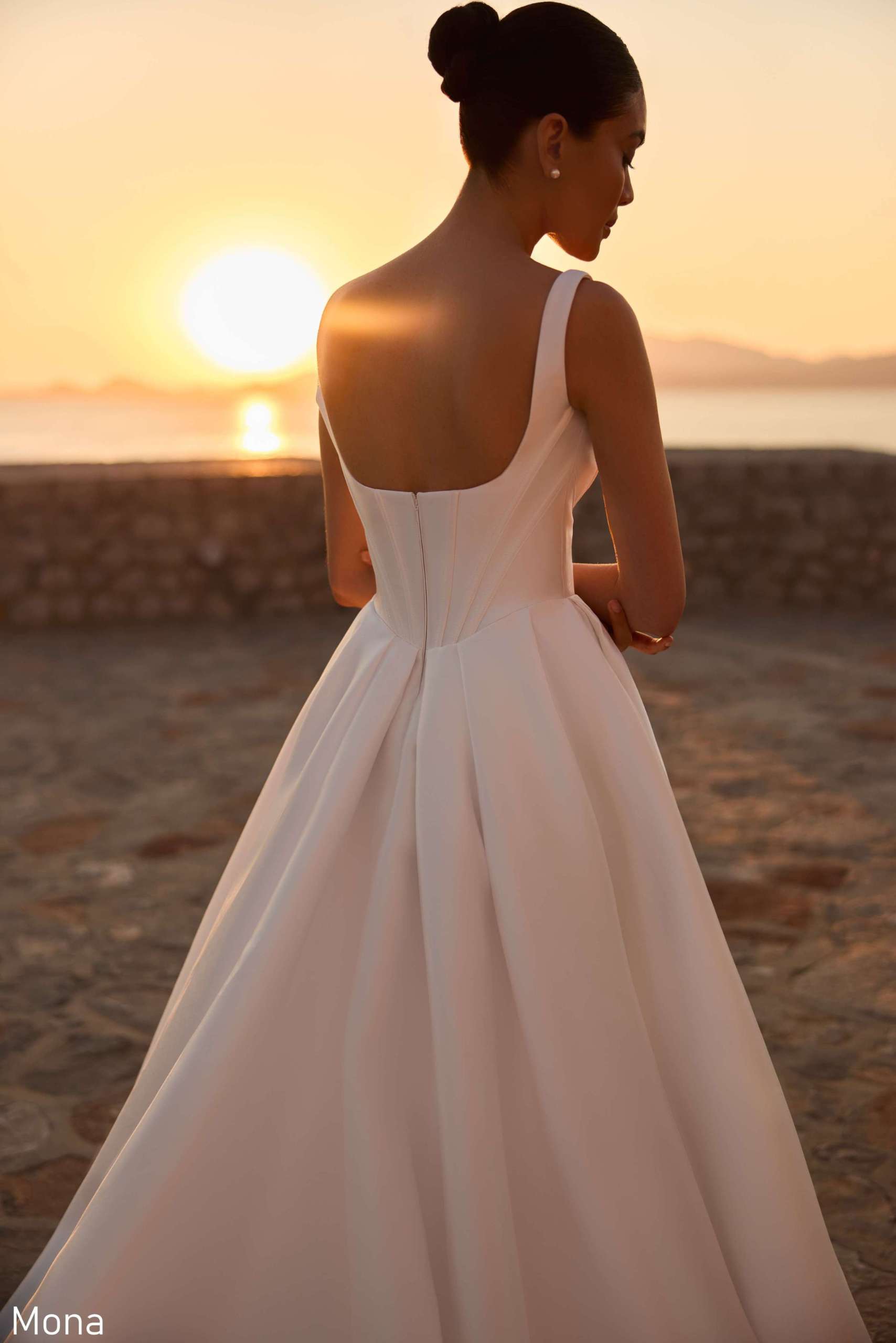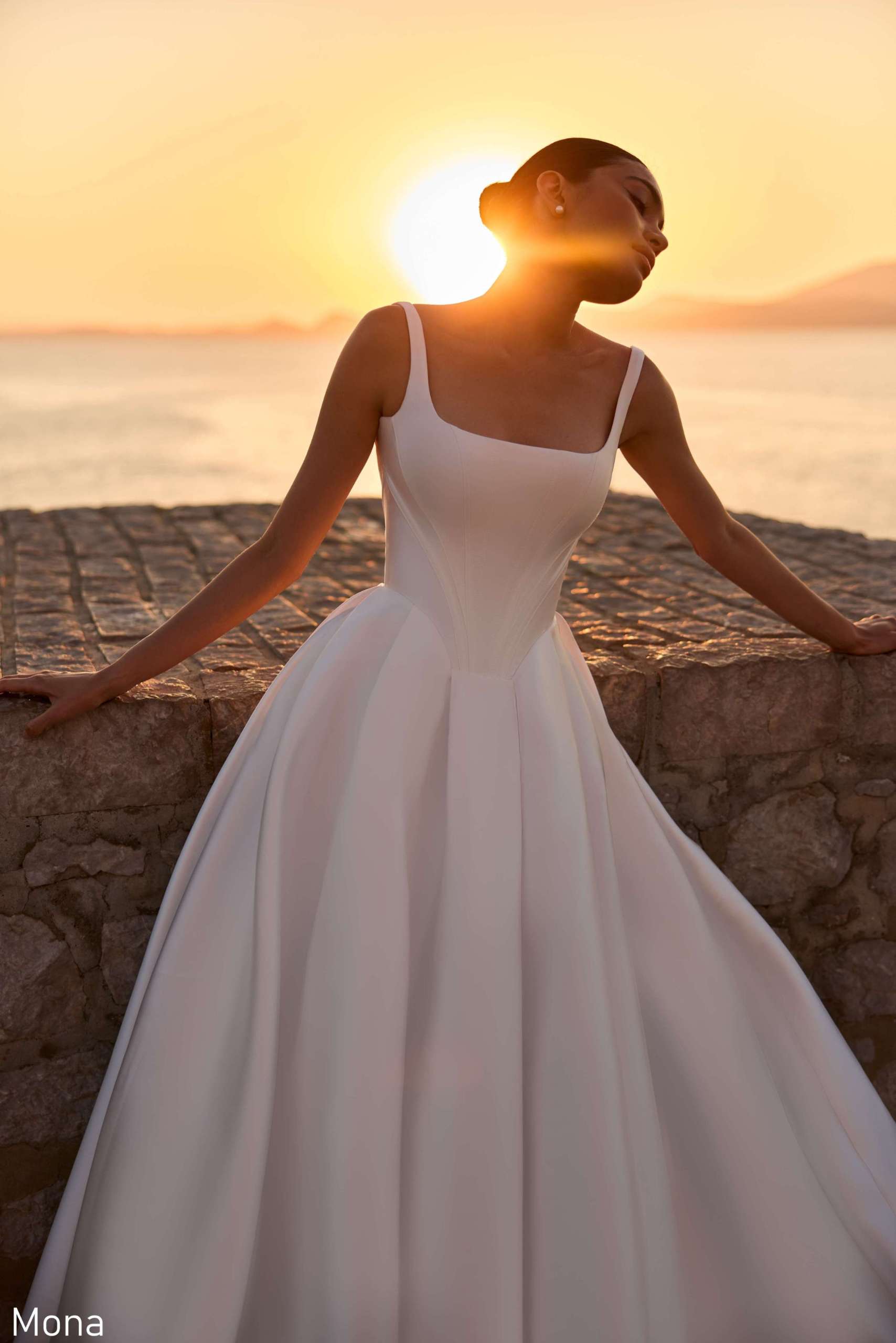 • Mona embodies understated luxury through its clean, sculptural silhouette. A modern square neckline and delicate straps introduce refined simplicity with a contemporary edge.
